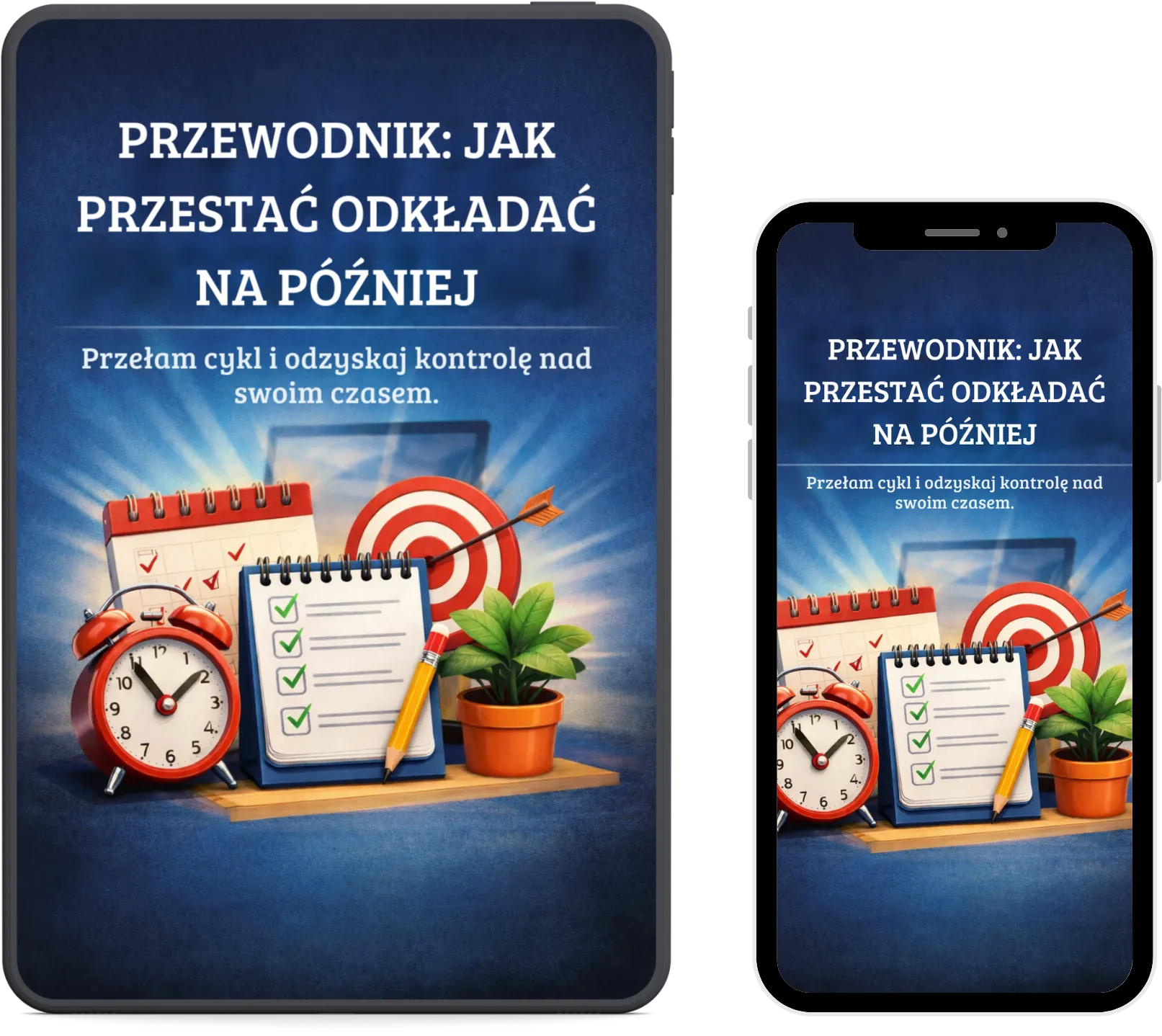 Nie przegap okazji, by zdobyć przewodnik z 75% zniżką. Przerwij cykl odkładania na później, odzyskaj kontrolę nad czasem i stań się osobą, która działa — już dziś. W pakiecie dostajesz pełny przewodnik + 3 strategiczne eBooki w prezencie.