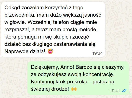 Przestajesz być „osobą, która ciągle odkłada”, a stajesz się kimś, kto robi to, co postanowił/postanowiła. Więcej jasności. Więcej skupienia. Więcej wiary w siebie.